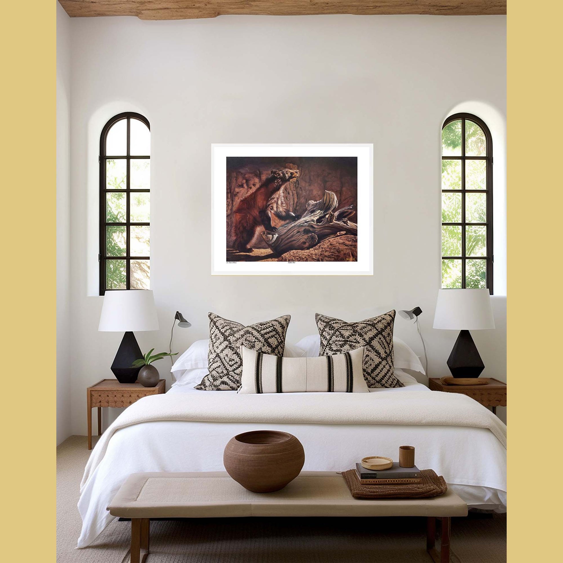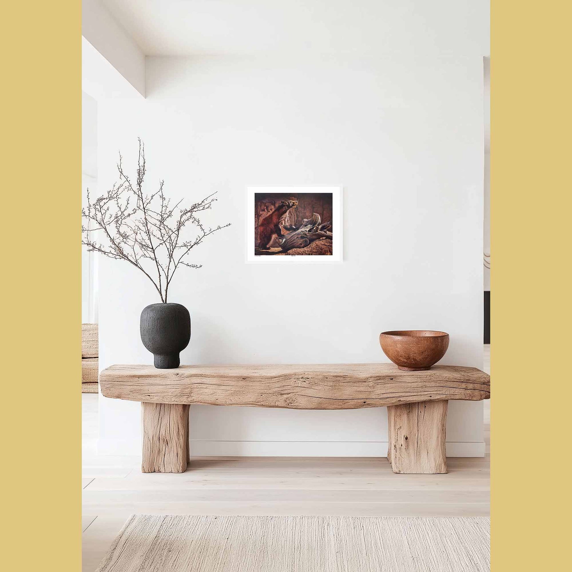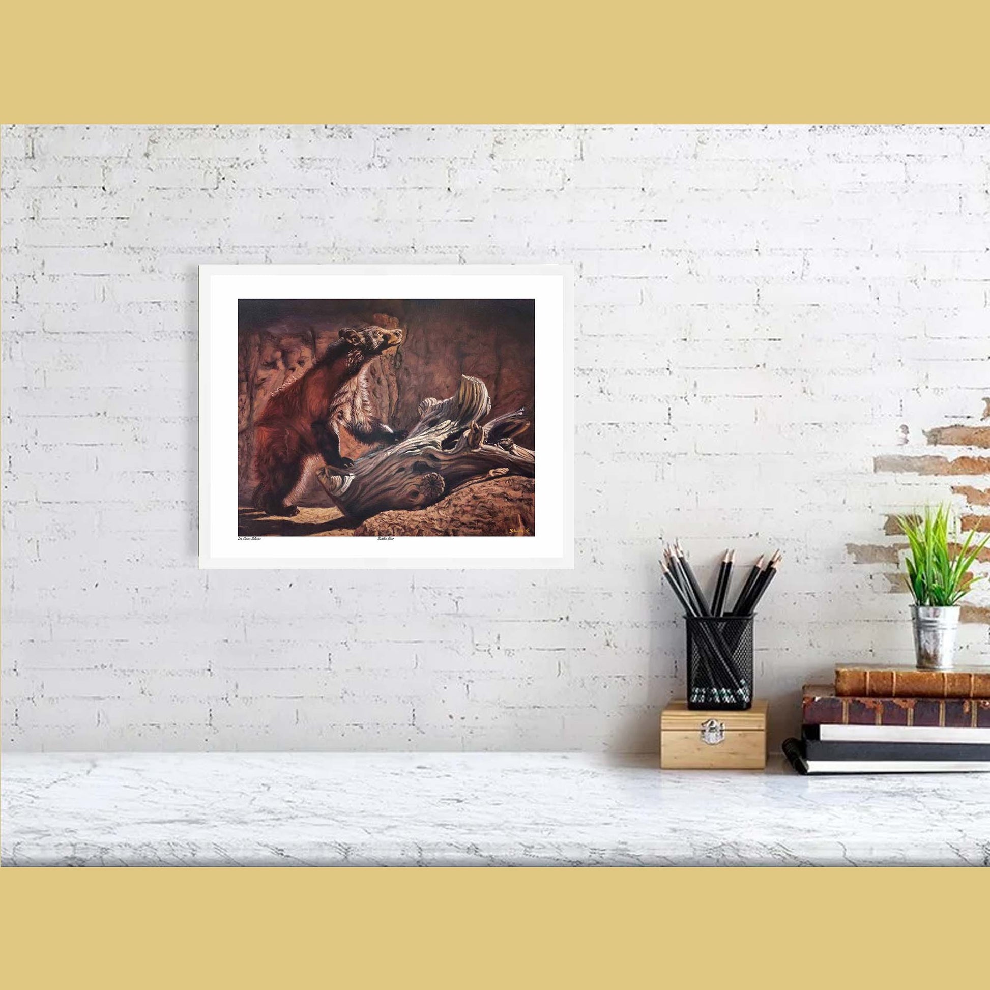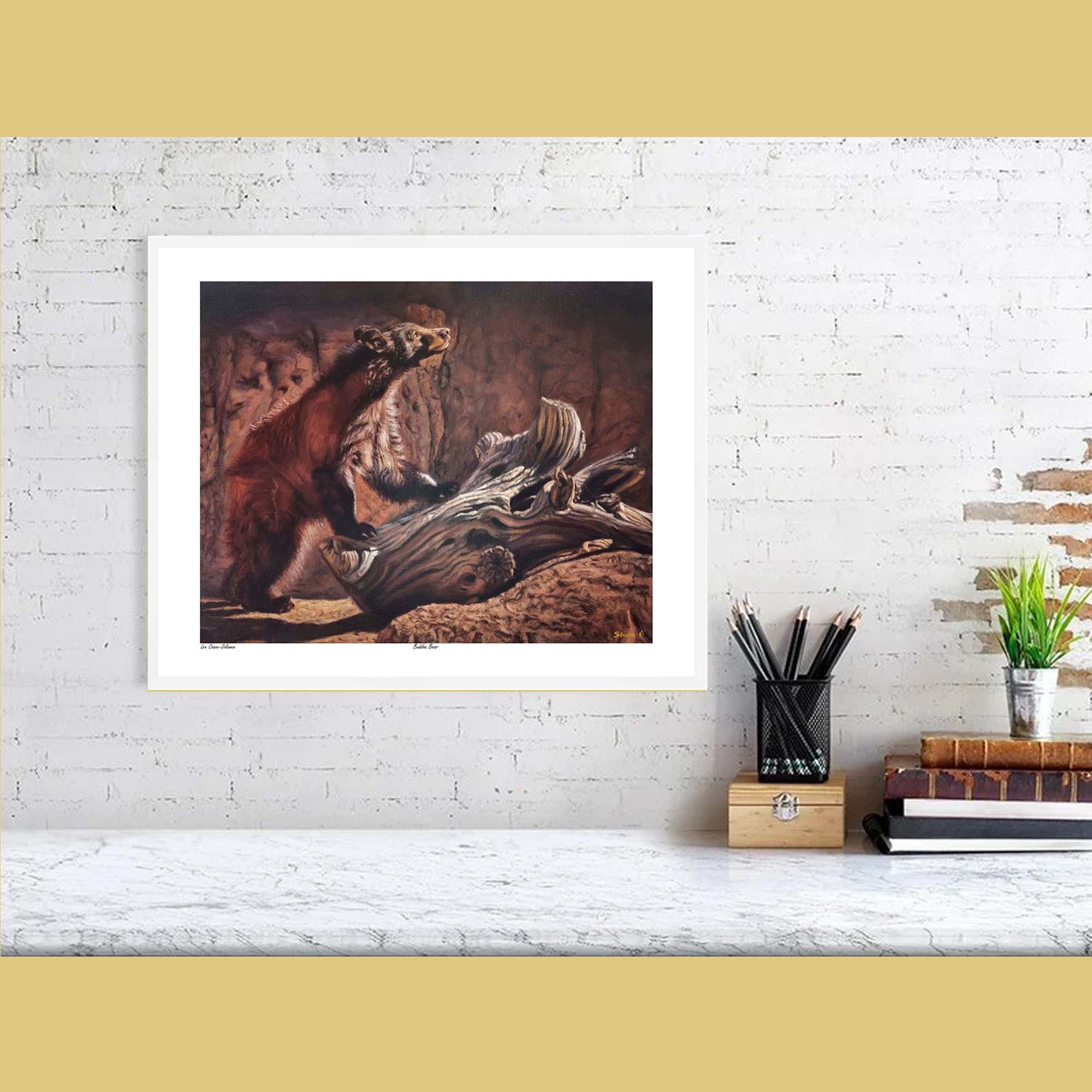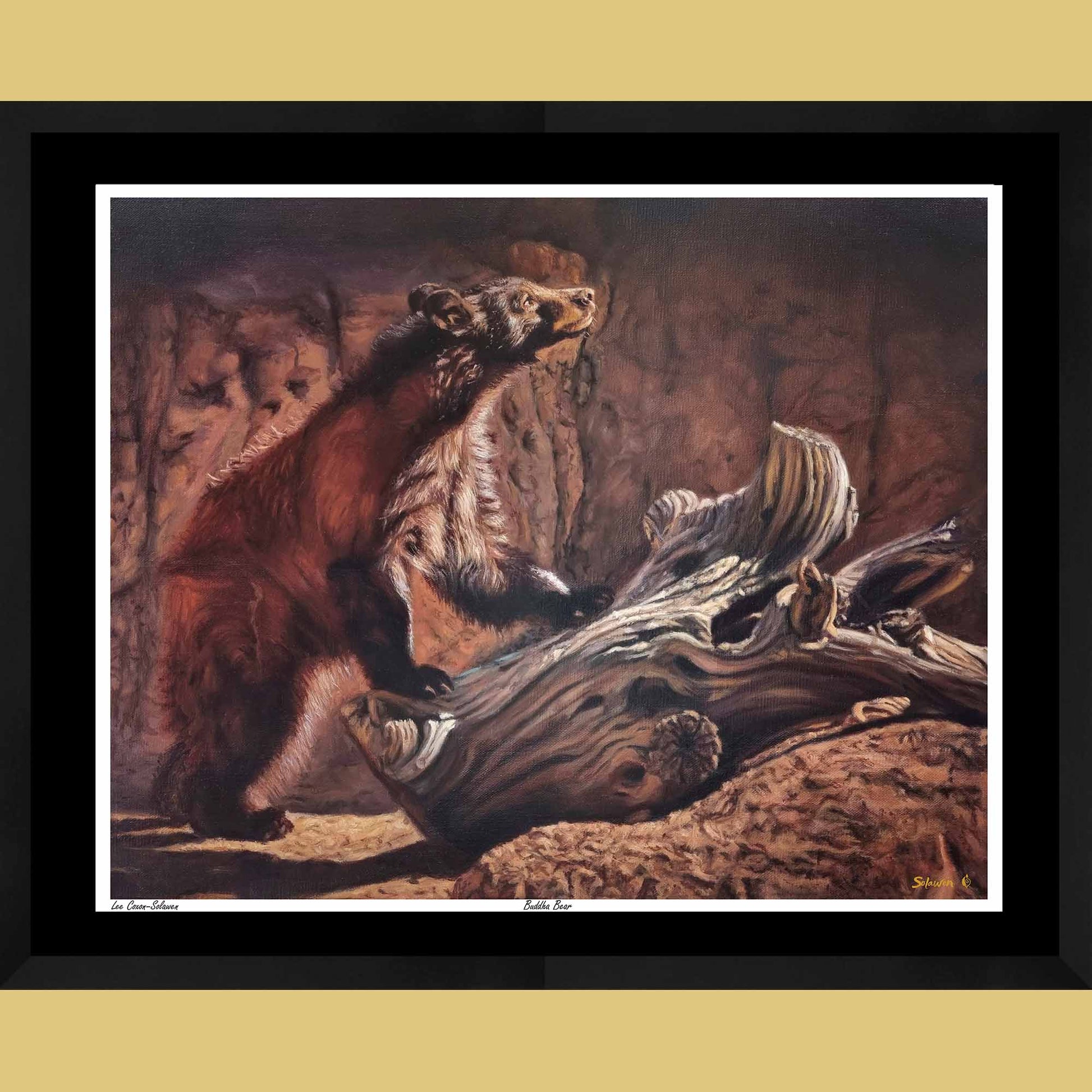 Painted in oil, Buddha Bear is more than fur and form; it is stillness given shape. Resting calm upon the fallen log, eyes steady in the half-light, this quiet guardian reminds us that strength is not always force, but presence; not domination, but understanding.