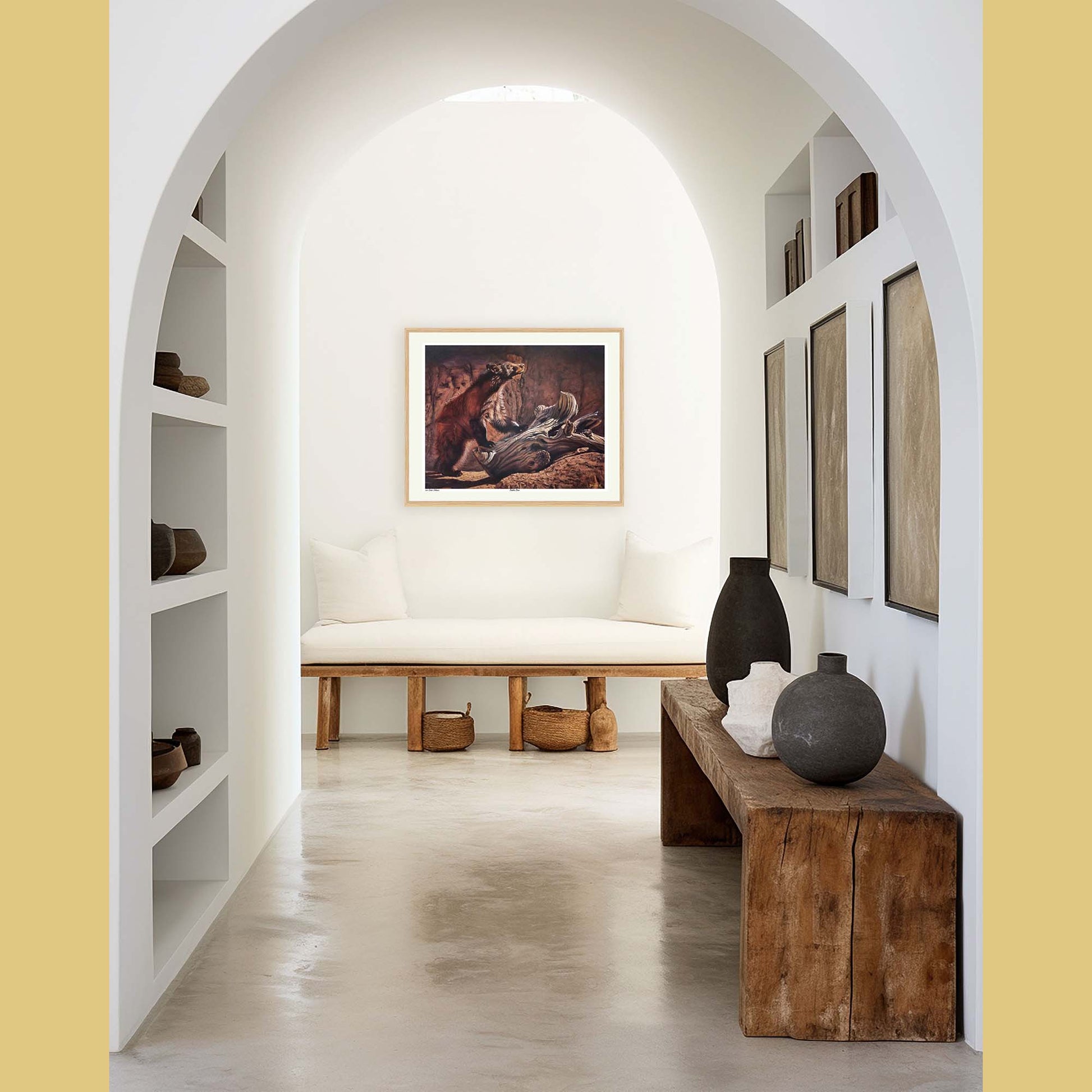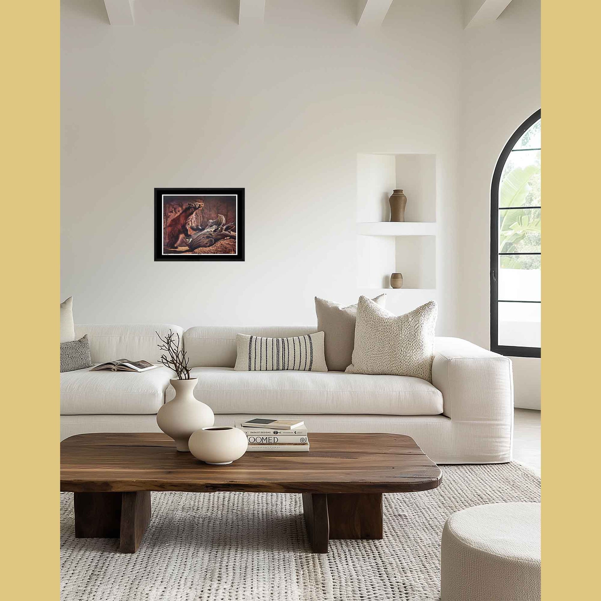 Enshrined in oak, white, or black frame, the piece becomes not only art but an invocation—a gentle reminder that wisdom lives in the quiet, that eternity can be glimpsed in a single gaze.